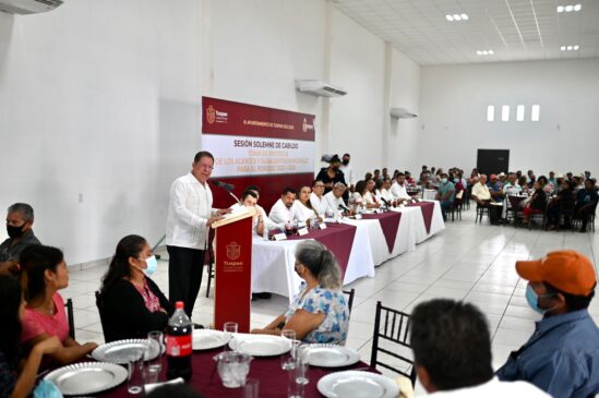 Tuxpan, Ver.- En sesión solemne de cabildo se realizó la entrega de constancias de mayoría a los agentes y subagentes municipales y se les tomó la protesta de ley. Estos servidores públicos estarán en funciones hasta el 30 de abril del 2026.