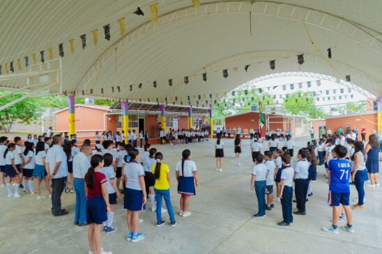 En el ámbito educativo, encabezó actos cívicos y realizó la entrega de material didáctico y una computadora a la primaria Vicente Guerrero, así como pintura a la primaria Josefina Hurtado de Montes de Oca, con el objetivo de mejorar las condiciones de infraestructura escolar y brindar espacios más dignos a niñas y niños.