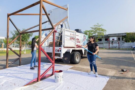 La labor que realiza desde el territorio junto con su equipo de trabajo, cambiaron los tableros de basquetbol, y pintaron los juegos infantiles, las canastas, así mismo las porterías de fútbol rápido y se delineó la cancha para que los jóvenes puedan tener un espacio donde practicar el deporte.