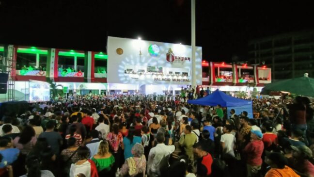 ¡Mexicanas y Mexicanos, Viva Nuestra Independencia!, ¡Viva Miguel Hidalgo y Costilla!, ¡Viva José María Morelos y Pavón!, ¡Viva doña Josefa Ortiz de Domínguez!, ¡Viva Vicente Guerrero!, ¡Viva Ignacio Allende!, ¡Viva Leona Vicario!, ¡Vivan los héroes que nos dieron Patria y Libertad!, ¡Viva nuestra soberanía!, ¡Viva la Democracia!, ¡Viva Tuxpan!, ¡Viva Veracruz!; ¡Viva México!, ¡Viva México!, ¡Viva México!, exclamó, al tiempo que ondeó la bandera nacional e hizo repicar la campana del Palacio Municipal; tal como lo hiciera el Padre de la Patria, Miguel Hidalgo y Costilla la madrugada del 16 de septiembre de 1810.