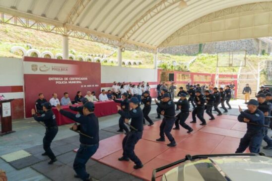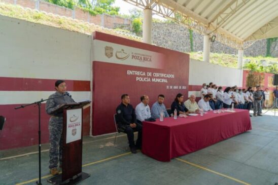 El alcalde Fernando Remes Garza, acompañado de integrantes del cuerpo edilicio y autoridades de Seguridad Pública, entregó las constancias de participación a los 30 elementos policiacos que finalizaron el curso, exhortándolos a continuar profesionalizándose, para que cumplan con su deber, el cual es servir y proteger la integridad física de los pozarricenses, así como sus derechos.