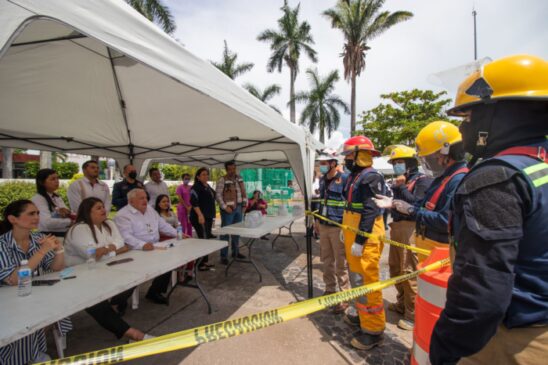El ejercicio de prevención inició en punto de las 12:19 horas, con bandera a media asta