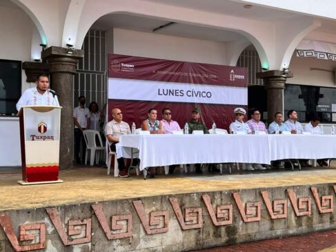 El acto estuvo encabezado por el Prof. Jorge Arturo García Robles, director de Educación, en representación del alcalde José Manuel Pozos Castro; el Capitán de segundo de Zapadores, Sergio Martínez Martínez, perteneciente al V Batallón de Ingenieros de Combate; el capitán de Corbeta Lic. en Contaduría Juan Zumaya Franco, jefe del departamento de Inspección Financiera de la Fuerza Naval del Golfo; Ing. José René Téllez Medina, director de Protección Civil.