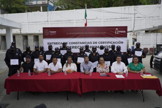 Tuxpan, Ve.- Como parte de la profesionalización de los elementos de Seguridad Pública, se realizó la entrega de Constancias de Certificación en Derechos Humanos, a elementos de la Policía Municipal.