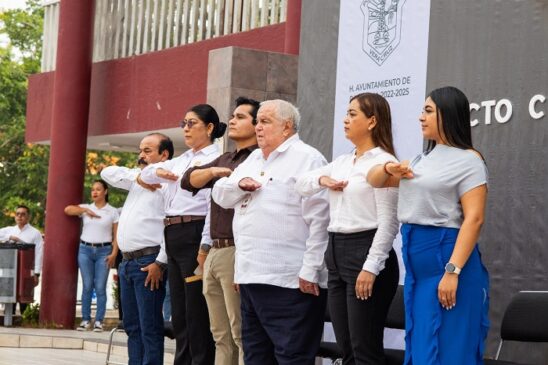 Durante el evento, se rindieron honores al lábaro patrio y se entonó el Himno Nacional Mexicano, en presencia de autoridades municipales, personal del Ayuntamiento, representantes de instituciones educativas y ciudadanía en general.