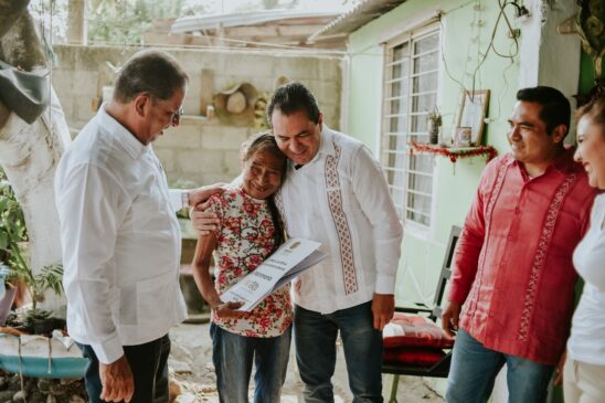 El alcalde José Manuel Pozos Castro acompañó al Subsecretario de Finanzas y Administración Eleazar Guerrero Pérez y al Director de Patrimonio del Estado Arturo Sosa Vázquez en la entrega de estas escrituras, que también representan bienestar.