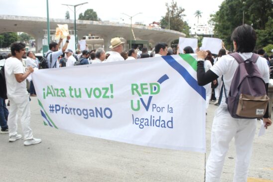 Xalapa, Ver. – Para visibilizar la exigencia de la mayoría, es que catedráticos y estudiantes de la Universidad Veracruzana (UV) salieron a la calle para decir no a la prórroga que le permite seguir en el cargo al rector Martín Aguilar Sánchez.