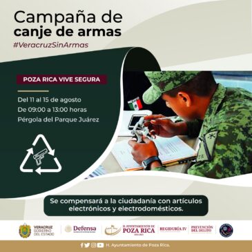 Poza Rica, Ver. – Del 11 al 15 de agosto, participa en la Campaña de Canje de Armas 2025 y forma parte