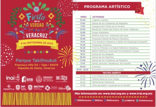A horas de iniciar el evento de la Fiesta de la Verdad en el Parque Temático Takilhsukut, los organizadores: IVAI, IVAIV, SECTUR, DIF Estatal, y el Gobierno Municipal de Papantla, se declaran listos para recibir a los miles de niños y jóvenes que asistirán.