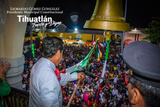 El presidente municipal Leobardo Gómez González, presidió esta noche la conmemoración del grito de Independencia en este municipio. Acompañado por la presidenta del DIF, Patricia Ortíz de Gómez, de ediles y autoridades militares, se dirigió a los tihuatecos quienes abarrotaron la explanada del parque Benito Juárez.