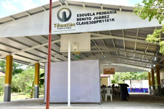 Tihuatlán , Ver. Tras concluir la rehabilitación del techado del área de impartición de educación física de la escuela primaria Benito Juárez, este día el alcalde Leobardo Gómez González, acudió a efectuar la inauguración, en compañía de ediles y autoridades auxiliares.