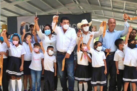 Luego de está participación, en compañía de regidores, personal directivo, integrantes del comité de obra y padres de familia, pasaron a realizar el corte inaugural del techado de esta escuela de la Antigua Poza Larga