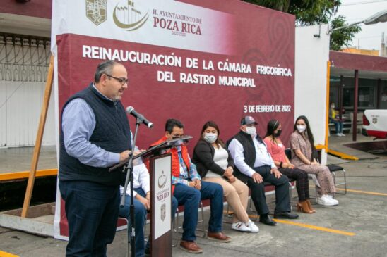 El presidente municipal de Poza Rica, Fernando Remes Garza, en compañía de integrantes del cabildo municipal, reinauguraron la cámara frigorífica del rastro municipal que durante 10 años no se había utilizado.