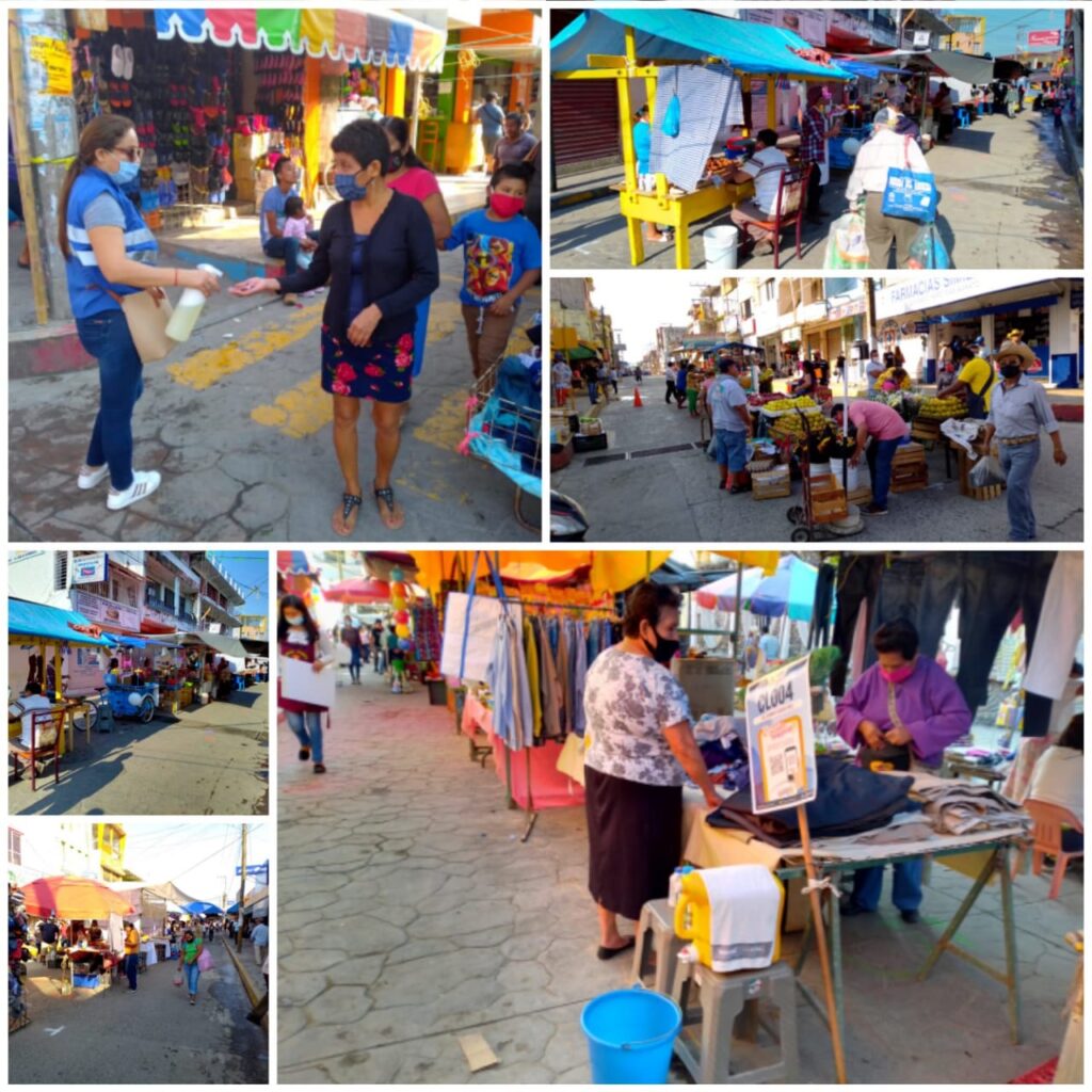 El gobierno municipal que encabeza Jorge Vera Hernández colocó en lugares estratégicos, módulos sanitarios para verificar que ingresaran al tianguis una persona por familia, que portaran cubre bocas, al tiempo que les aplicaban gel antimicrobiano al ingreso y a la salida del tianguis.